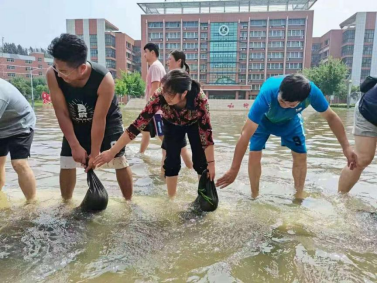 汛情就是命令,险情就是战场。在这次防汛抗灾中,全体师生默默无闻,无论在家中还是在学校都尽己之力,倾力奉献。学生党支部书记曹桂民、张志超积极参与校地防洪抢险突击队;团委书记张高峰、辅导员王淑杰、王欣欣每天接打近200多个电话,联系灾区学生;办公室主任郝道合在负责新冠疫情摸排的同时,又担负起校友、师生捐款、受灾财产损失摸排等工作;白巧灵、张超清、吕红兰、吴海霞、张凤梅等人搬运救灾物品,确保及时发放;王利娟、高德琴老师涉水来校查看学院财产受损情况;邓沛栖、陈全献、马艳芳、曲富柱等老师更是积极奔走,为社会爱心人士、校友捐款捐物提供大力支持。(因信息不对称,可能会遗漏部分参与抗灾的老师,在此致歉!)