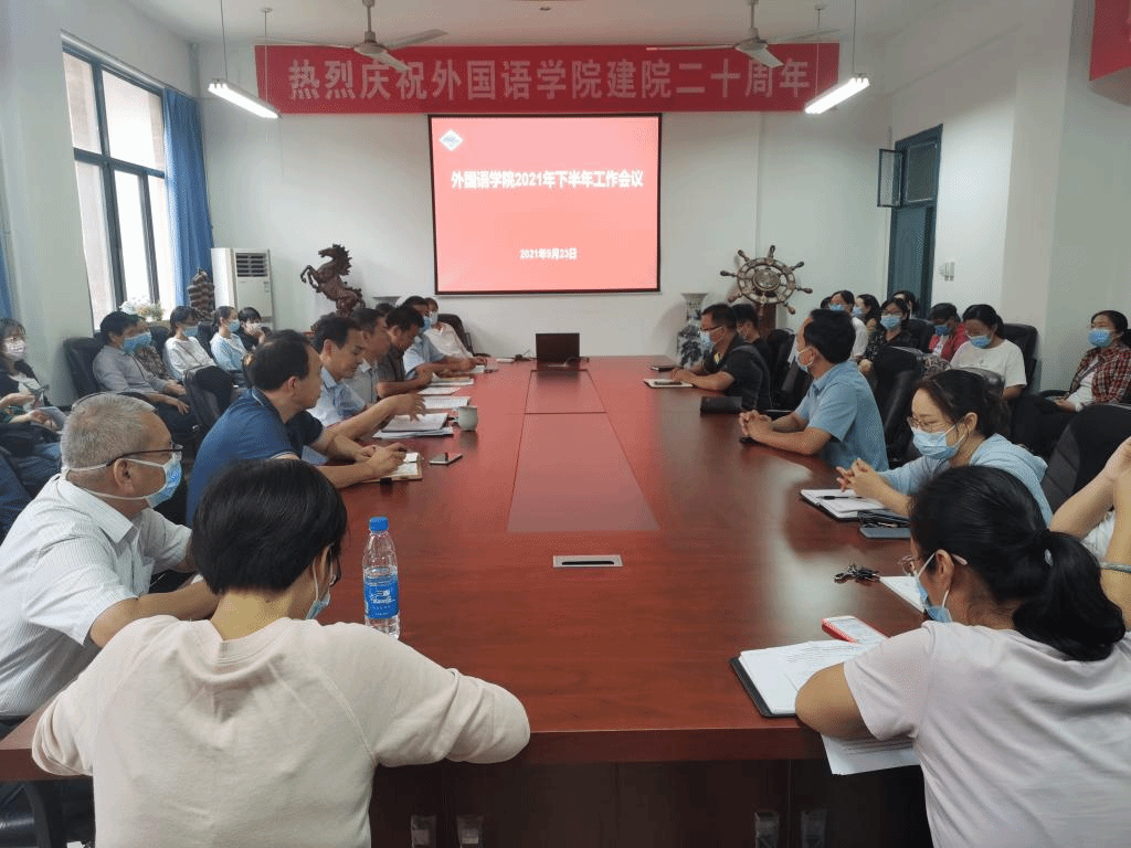 9月23日下午,外国语学院在7#211会议室召开2021年下半年工作会议。学院党委书记张忠迪,院长李会民,副书记龚俊朋,副院长万文龙、程建锋,以及全体教职工参加会议。会议由院长李会民主持。