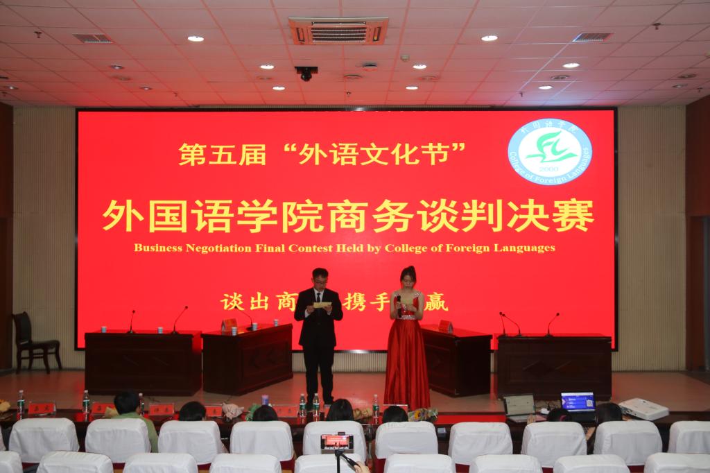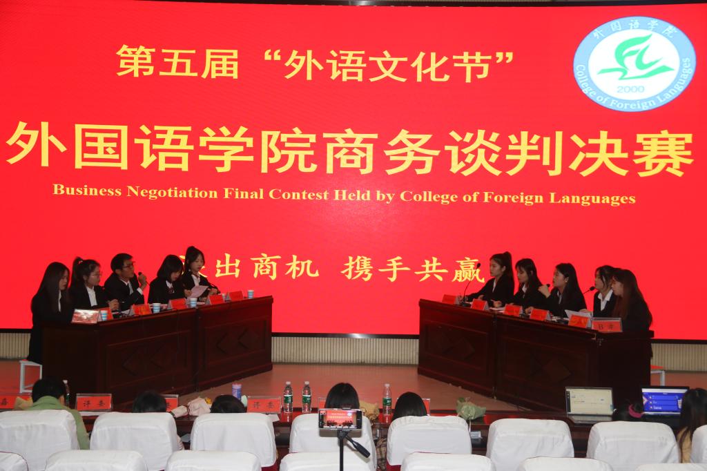 为强化学生英语应用能力,提升学生团队协作精神,11月25日晚,我院在图书馆学术报告厅举办了第五届外语文化节之商务英语谈判大赛。外国语学院院长李会民出席了开幕式,外国语学院师生代表30余人参加了现场开幕式,商务英语专业2019级和2020级学生代表150余人通过现场直播观看了比赛。