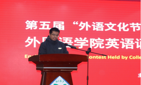 为提升学生英语语言能力,培养良好思维品质,树立正确文化意识,增强民族文化自信,11月26日晚七点,我院在图教201举办第五届外语文化节英语诵读大赛。外国语学院副院长程建锋出席了比赛,外国语学院师生代表30余人参加了现场比赛活动,英语专业2021级全体学生近300人以线上直播方式观看了比赛并参与线上互动。