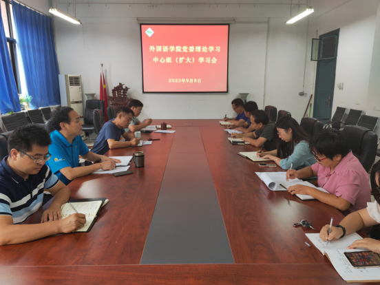 9月8日下午,外国语学院在7#211会议室召开党委理论学习中心组(扩大)学习会,学院党政领导班子、党委委员、支部书记参加会议。会议由院党委书记张忠迪主持。
