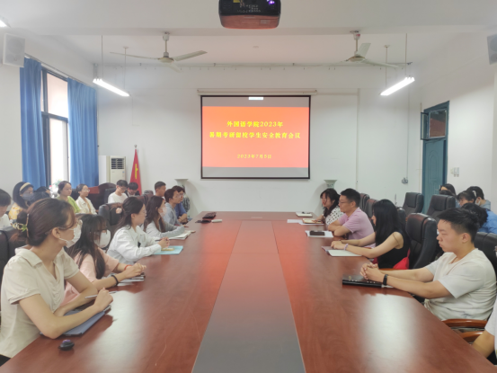 7月5日下午,外国语学院在7211会议室召开2023年假期留校考研学生安全教育会议。外国语学院副院长张志超、团委书记张慧、毕业生辅导员朱晋妮及全体假期留校考研学生参加了会议。
