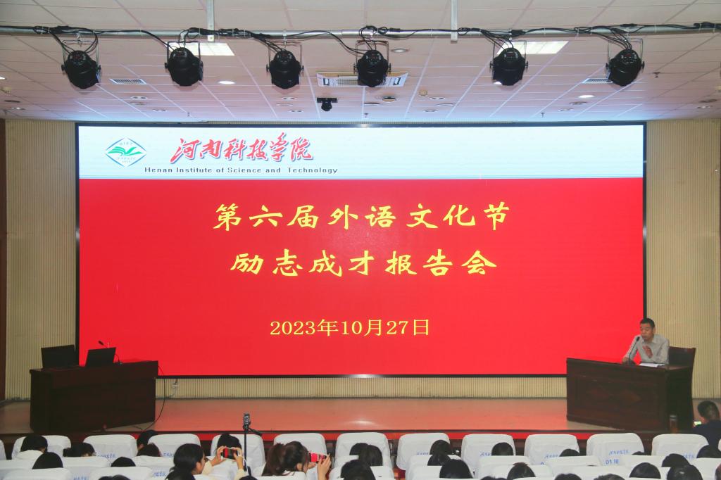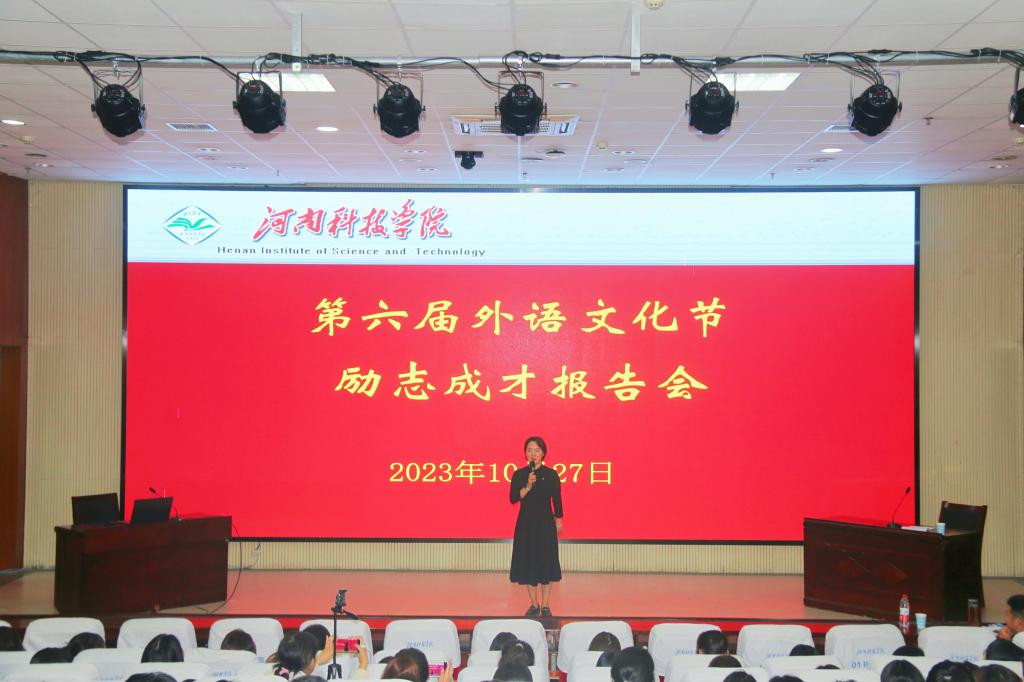 10月27日下午,外国语学院特邀2004届优秀校友、河南君兰集团董事长李杰林,2008届优秀校友、河南财经政法大学计算机与信息工程学院团委书记张晓静,在图书馆一楼报告厅举行第六届外语文化节之励志成才报告会。本次报告会由学院相关负责人主持,2023级全体新生参加本次活动。
