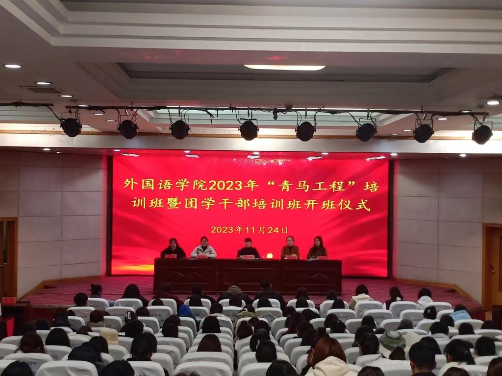 仪式在激昂的团歌声中拉开序幕。朱晋妮宣读了《外国语学院2023年“青马工程”培训班暨团学干部培训班培训方案》,并着重强调了培训的纪律要求。