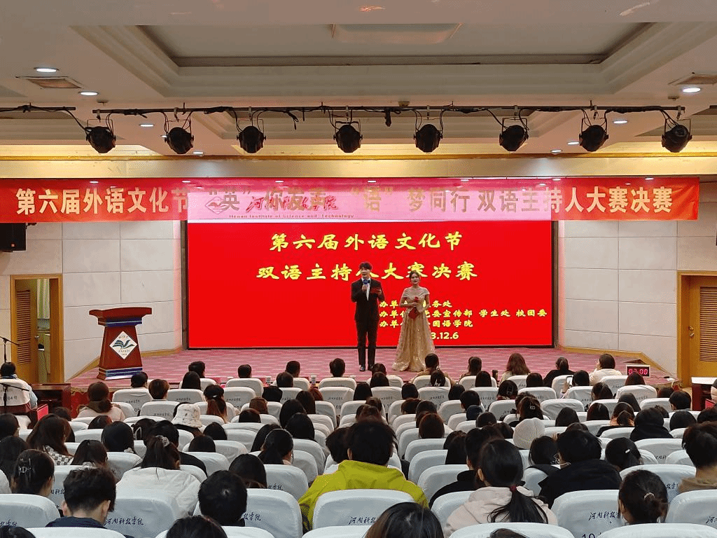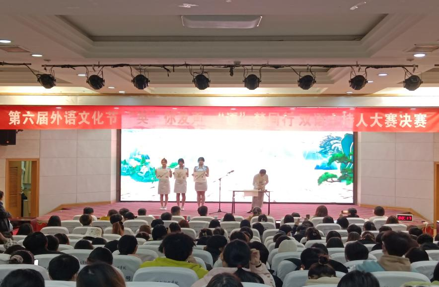 为进一步提升我校学生的外语文化素养,增强学生的双语表达能力,展现不同语言魅力,促进中外文化交流,12月6日晚,由教务处主办,校党委宣传部、学生处、校团委协办,外国语学院承办的第六届外语文化节双语主持人大赛决赛在图教201举行。校党委宣传部副部长贾普君,校团委副书记王魁,外国语学院院长李会民、党委副书记吴峰和副院长张志超及各学院学生代表等300余人观看了比赛。