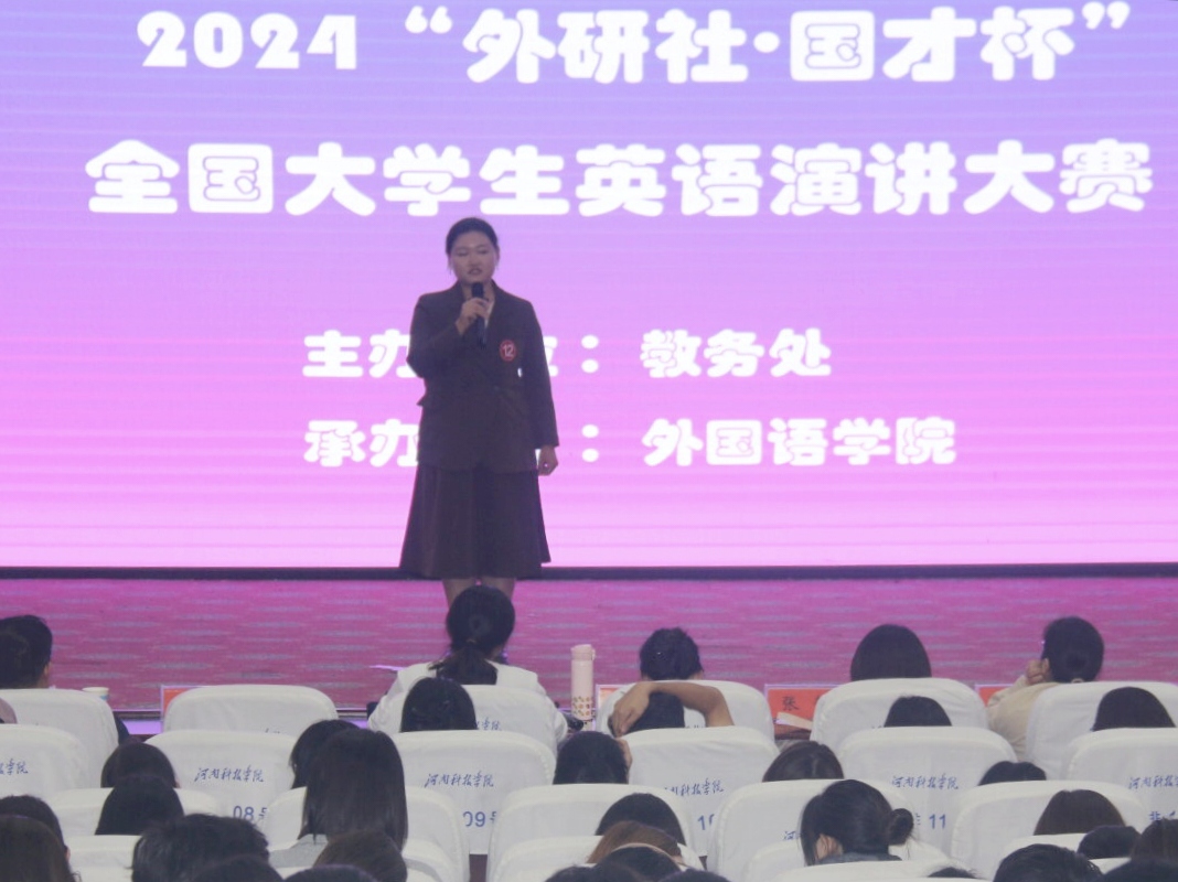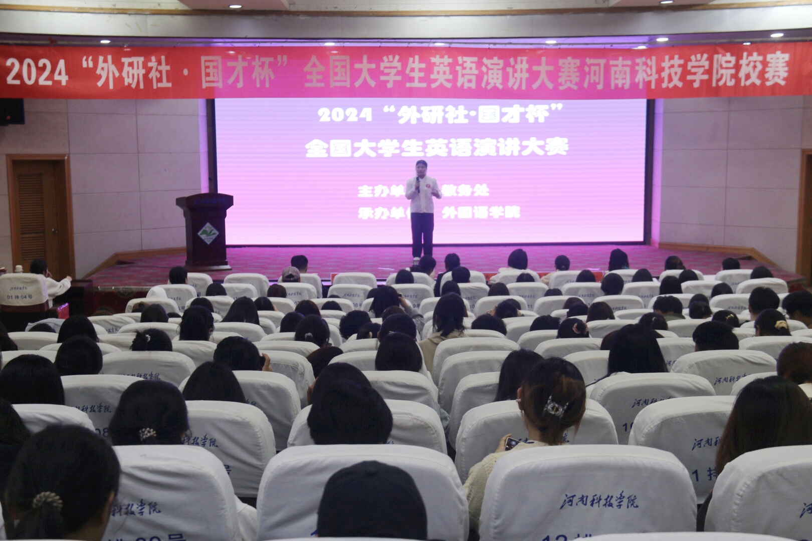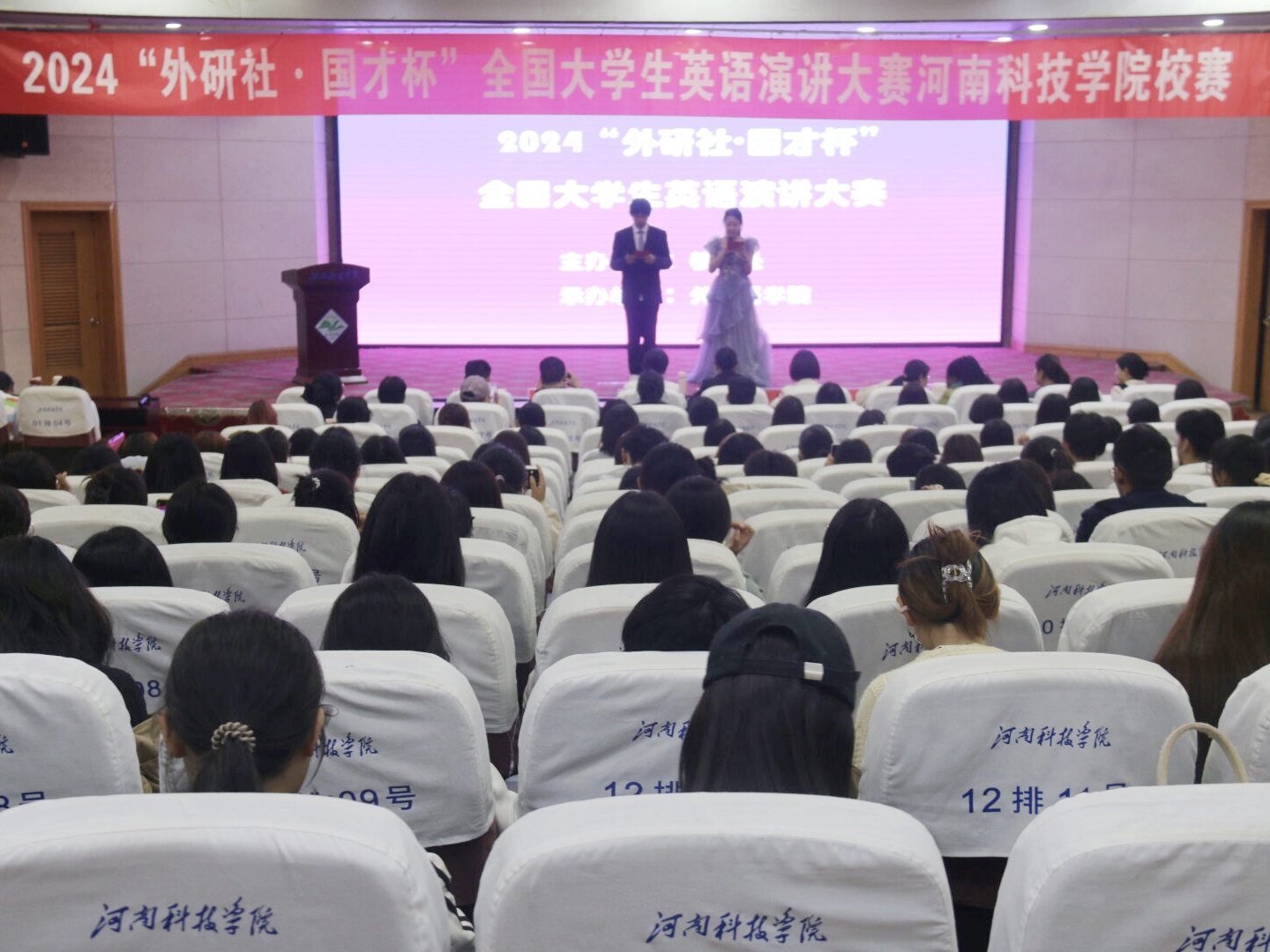 10月16日晚,由教务处主办,外国语学院承办的河南科技学院2024“外研社·国才杯”全国大学生外语能力大赛英语演讲大赛在图教201成功举行。教务处副处长赵高丽、外国语学院副院长张志超以及各学院教师和学生代表等300余人观看了比赛。