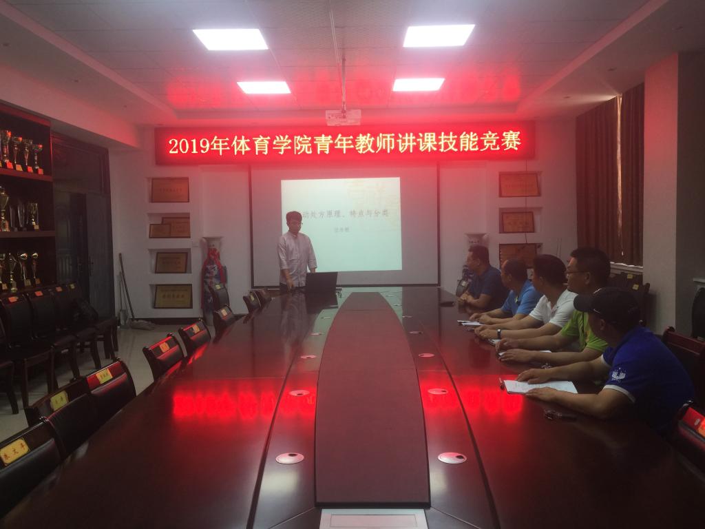 为进一步提高青年教师的教学能力,6月2日上午,我院在学院会议室和综合训练馆举行了2019年体育学院青年教师教学技能竞赛。副院长高泳、院级督导尚保春、社会体育指导与管理专业、体育教育专业、公共体育三个教研室负责人作为评委出席,参赛青年教师及学生共100余人参加竞赛活动。