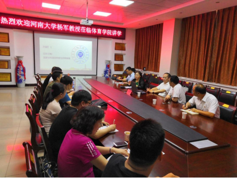 6月4日下午,应体育学院邀请,教育部全国普通高等学校体育教学指导委员会委员、国家社会科学基金学科规划评审组专家、博士生导师、河南大学体育学院原院长、党委书记杨军教授作了题为“国家社科项目申报与评审体悟”的学术报告会。体育学院院长雷鹏教授主持报告会,党委书记徐现峰、科技处副处长杨宾峰、副院长高泳以及兄弟院系青年教师和研究生一起听取了讲座。