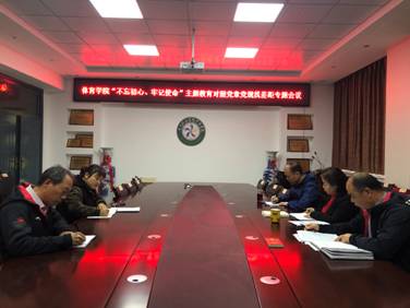 11月4日体育学院领导班子在院会议室召开“对照党章党规找差距”专题会议,院领导班子中党员参加了会议,会议由党委书记徐现峰主持。