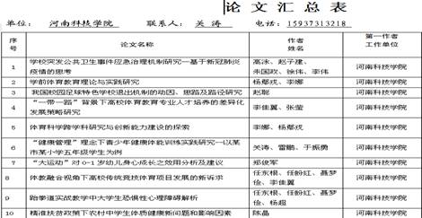 同时积极组织教师申报国家社科基金项目、教育部“十四五”规划课题 、河南省教育科学规划课题等科研项目,邀请校内外专家对申请书进行审核、修改。并按照河南省教育厅的要求,圆满完成第十四届全国学生运动会科学论文报告会的上报工作。