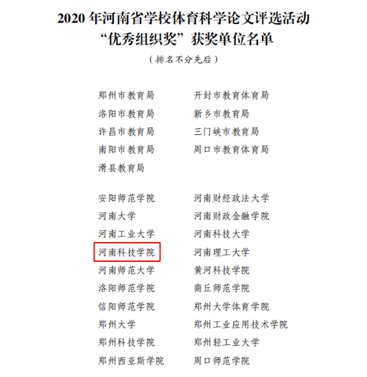 我校体育学院接到通知后,院长雷鹏第一时间传达征集信息并组织相关人员参加培训,副院长高泳、科研秘书关涛、研究生秘书李景龙,克服疫情带来的不利影响,积极组织教师和研究生线上选题、撰写论文、论证上报,学院共报送论文31篇。经过专家评审,荣获一等奖3项,二等奖10项,三等奖12项,同时我校获“优秀组织奖”。