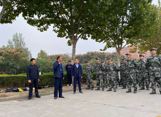 10月20日上午,体育学院党委书记徐现峰、党委副书记李志峰、团委书记郭全法、辅导员李听一行前往军训场地看望正在军训的教官和学生。