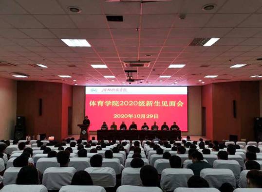 10月29日晚,体育学院2020级新生见面会在我校图书馆1楼报告厅隆重举行,体育学院党委书记徐现峰、院长雷鹏、党委副书记李志峰、副院长于振勇、体育系主任尚保春、体教教研室主任吴亮、社体教研室主任郑俊军、团委书记郭全法等出席会议,教师代表、全体辅导员和2020级149名本科新生、10名全日制硕士研究生参加了会议。