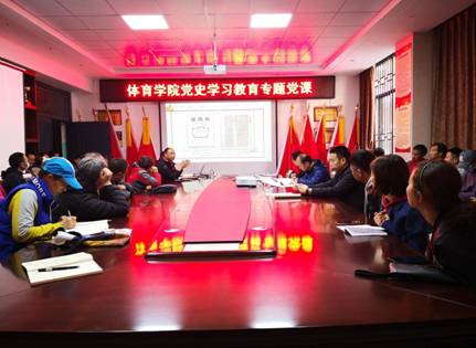 3月25日下午,体育学院党委书记徐现峰在院会议室以“中国红色体育精神的当代意义”为题,为全体党员上了一节生动的党史学习教育专题党课。