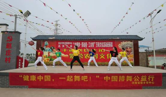 为了营造庆祝建党100周年浓厚氛围,4月23日上午,在体育学院党委副书记李志峰的带领下,卫琳等10名志愿者联合新乡市机关事务中心来到卫辉市后河镇赵庄村开展“健康中国,一起舞吧”中国排舞公益行活动,用他们独特的方式表达对党的感激,对祖国的热爱。