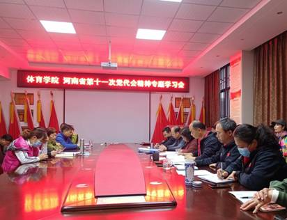 11月4日下午,体育学院在8#114会议室召开河南省第十一次党代会精神专题学习会。会议由院党委书记徐现峰主持,学院全体教职工参加了会议。