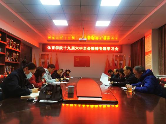 徐现峰指出,全会通过的《中共中央关于党的百年奋斗重大成就和历史经验的决议》,在文化建设和社会建设方面提到的弘扬中华优秀传统文化、体育强国建设、开展全民健身活动等内容,与我院专业有密切联系,要从中寻求发展机遇,推进我院事业发展,同时要把学习党的十九届六中全会精神同党史学习教育结合起来,同学习习近平总书记关于体育工作重要论述、指示精神结合起来,把理论学习运用到工作实践当中。