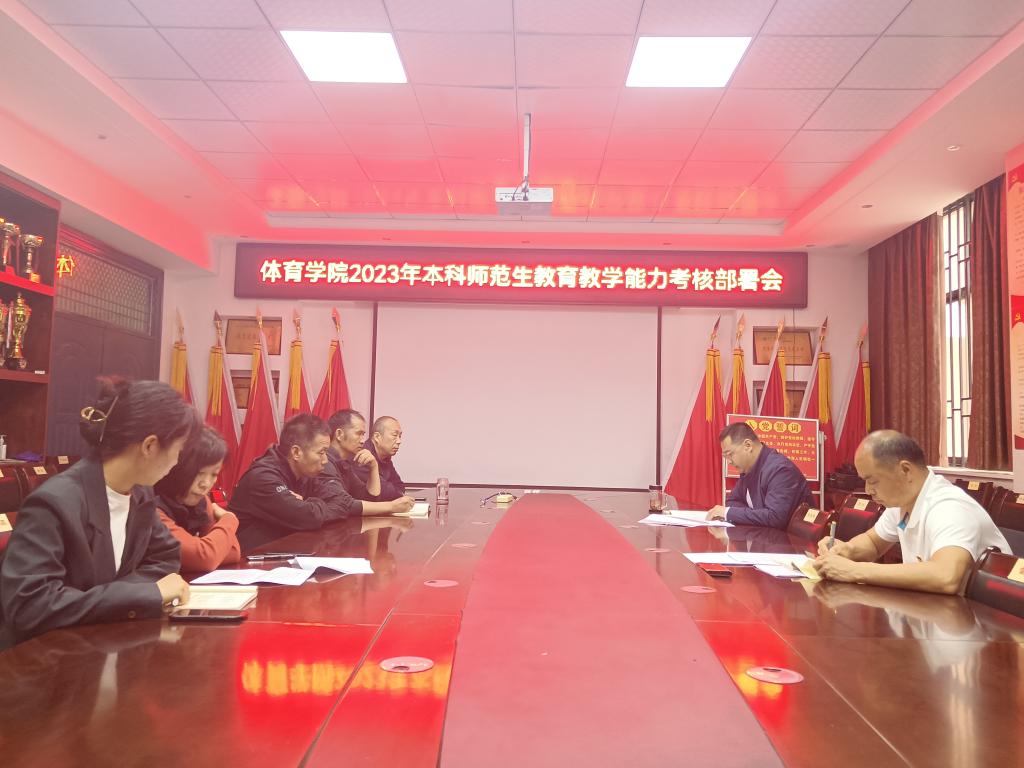 会上,高泳传达了学校相关会议精神,解读了《体育学院2023年本科师范生教育教学能力考核工作实施细则》,强调了本科师范生教育教学能力考核工作的重要意义,并明确了每一环节的具体考核内容、方法、要求、时间安排及负责人。