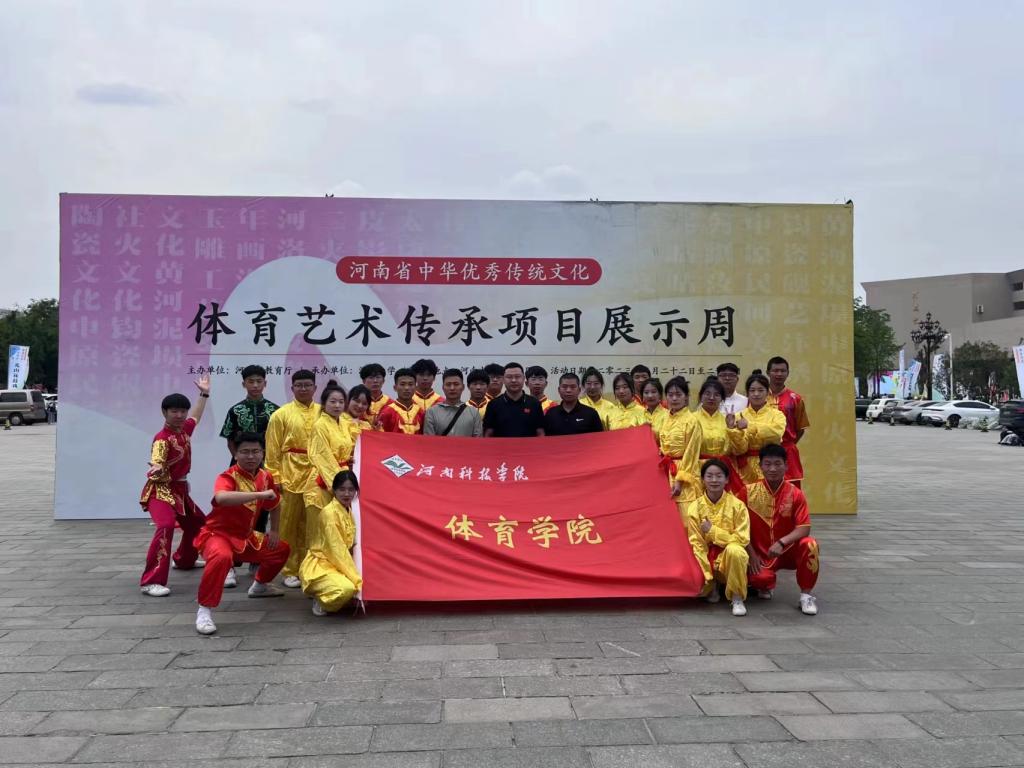 我校作为河南省第二批中华优秀传统文化传承基地,体育学院院长高泳、教练员岳修专、杨伟松带队展演了“河南岳家拳”项目,并获得优秀表演奖。