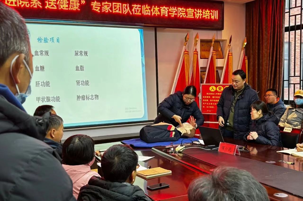 12月21日,校医院走进体育学院开展“进院系送健康”活动,进行健康知识与安全急救培训。体育学院全体教职工参加活动。