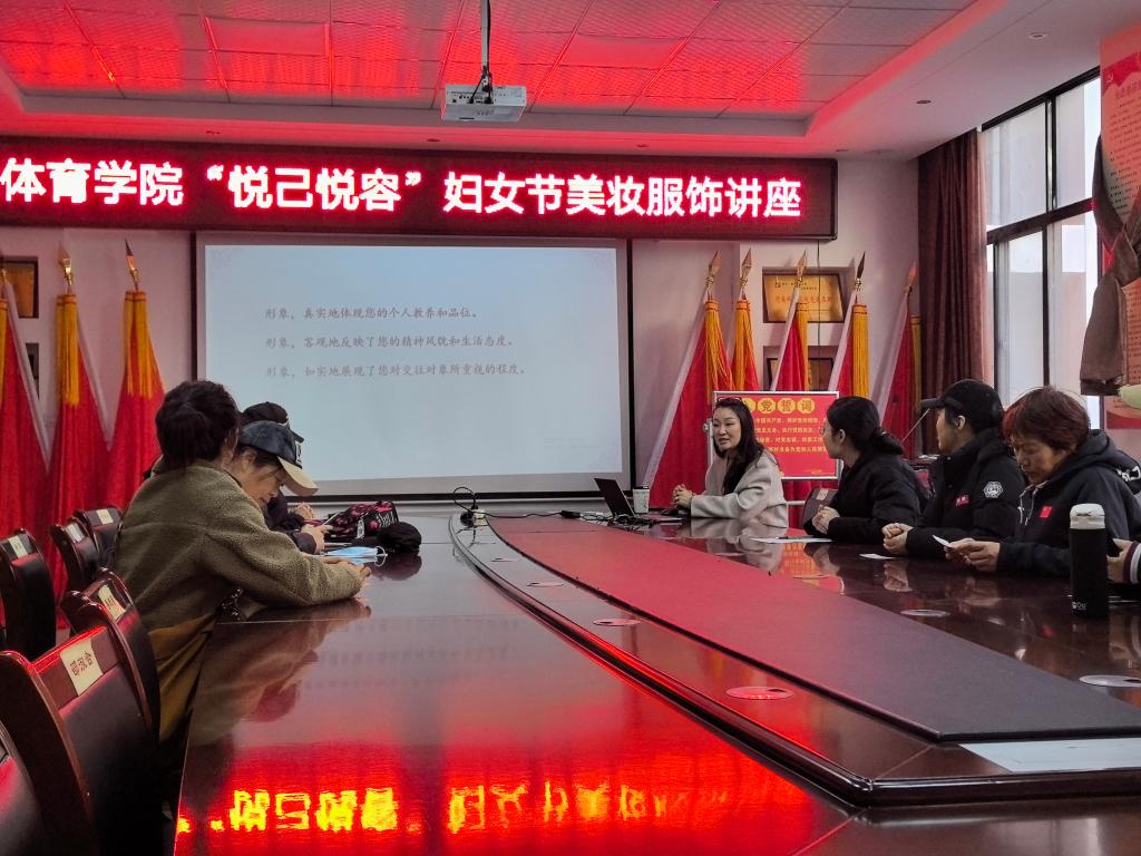 为庆祝“三八”国际劳动妇女节,丰富女职工精神文化生活,使教职工度过一个与美同行、轻松愉快的节日,3月7日下午,体育学院分会邀请服装学院教师谢佳为全院女教工,以“悦己悦容”为主题,开展了美妆服饰讲座。