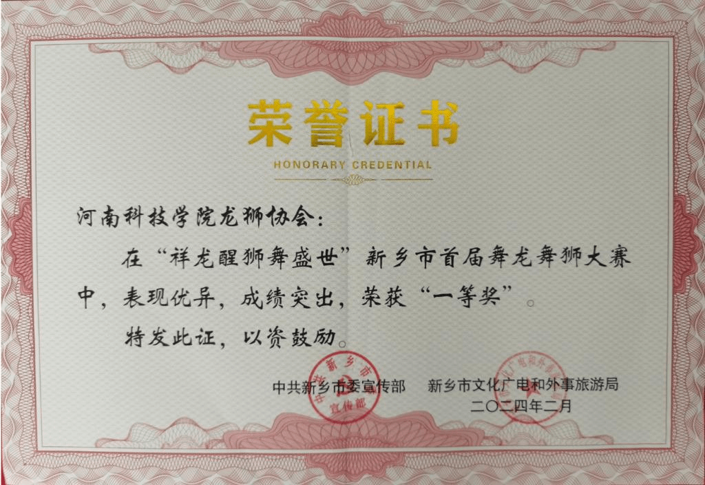 荣获新乡市舞龙舞狮大赛“一等奖”