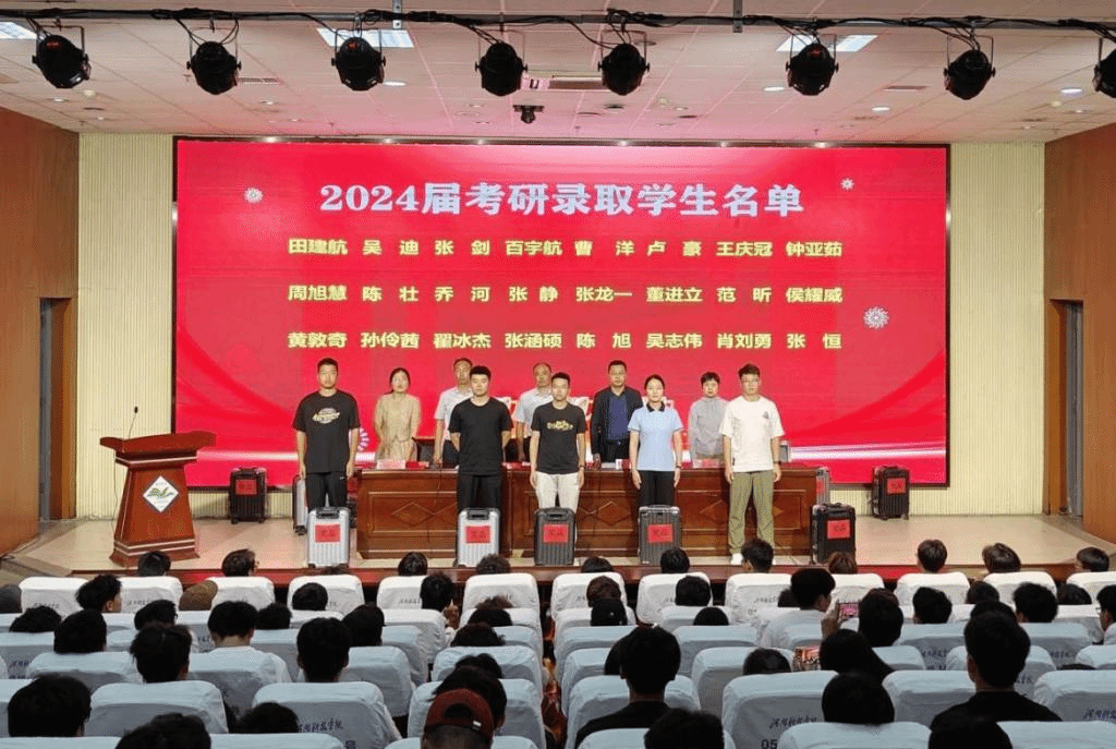 会上,高泳首先介绍了学院2024届毕业生考研整体情况,体育学院2024年本科毕业生共144人,有24人考取研究生,本科生考研录取率达16.67%,创近三年最新记录。高泳代表学院向被录取的24名学生表示热烈祝贺,同时表示学院历来重视考研工作,全过程、全方位为考研学子提供支持,营造了赶学比超的良好学习氛围。他也对低年级学生提出了要锤炼品德修为,坚持修身立德;牢记身份角色,练就过硬本领;坚持有的放矢,找准个人目标;坚持规划先行,有规划有行动,实现个人全面发展的四点希望。