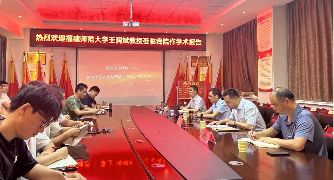 定期开展研究生导师培训是学院加强研究生导师队伍建设,提升研究生培养质量的重要手段。6月19日上午,体育学院2024年度硕士研究生导师培训会在学院会议室举行。我院特邀福建师范大学体育学院王润斌教授以“体育学研究生科研能力提升的经验与思考”为题,为参会导师和研究生做专题培训。学院党委书记徐现峰、院长高泳、副院长贾洪洲出席会议,青年导师代表,全体研究生参会。