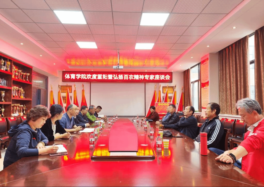 为欢度重阳节,弘扬“百农精神”,共谋学院发展,10月11日下午,学院召开“欢度重阳暨弘扬百农精神专家座谈会”。体育学院离退休老教师、高等职业技术学院院长乐玉忠、体育学院党政班子成员、青年教师代表参加了座谈会。