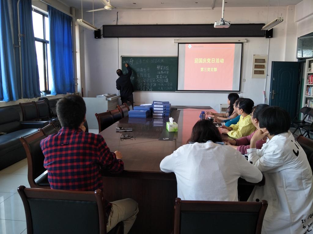 69年,风雨兼程;69年,春华秋实。在中华人民共和国迎来69岁华诞之际,第三党支部于9月30日在8号楼508教研室开展“迎国庆”主题党日活动,庆祝中华人民共和国成立69周年。