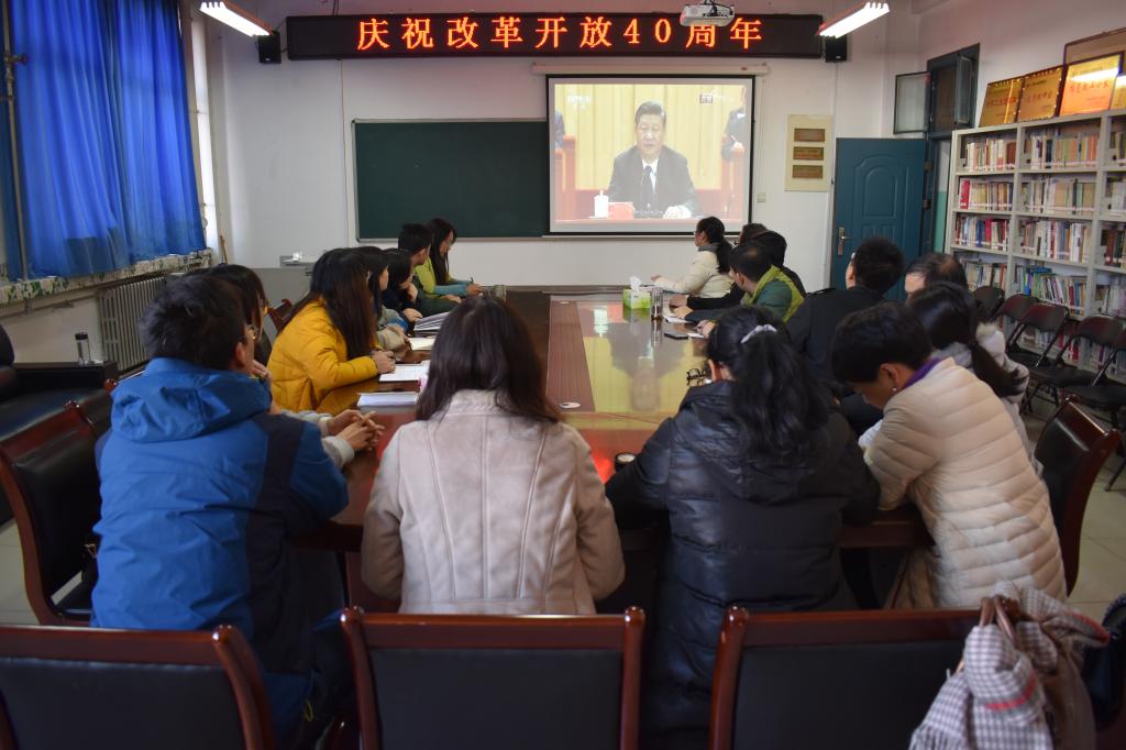 12月18日上午10时,庆祝改革开放40周年大会在北京人民大会堂隆重举行,中共中央总书记、国家主席、中央军委主席习近平出席大会并发表重要讲话。我院组织全体教职工在学院508会议室集中收看了大会实况,认真聆听了习近平总书记的重要讲话。