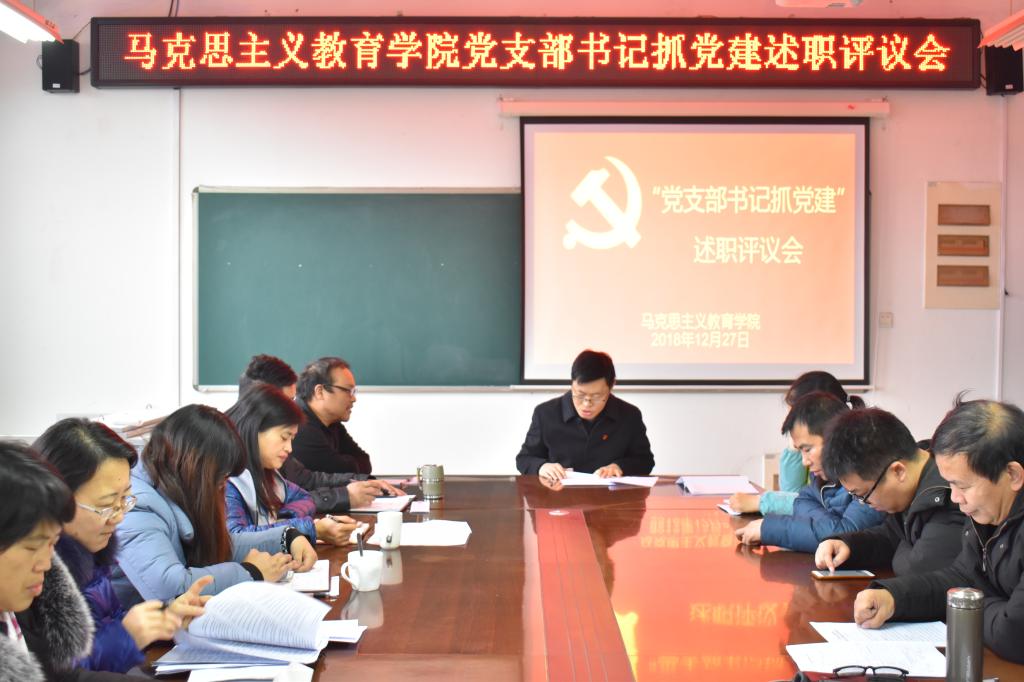 12月27日下午,马克思主义教育学院2018年度基层党支部书记述职评议会议在学院508会议室圆满召开。会议由马克思主义教育学院院长、党总支副书记王冰蔚主持,学院全体党员参加会议。