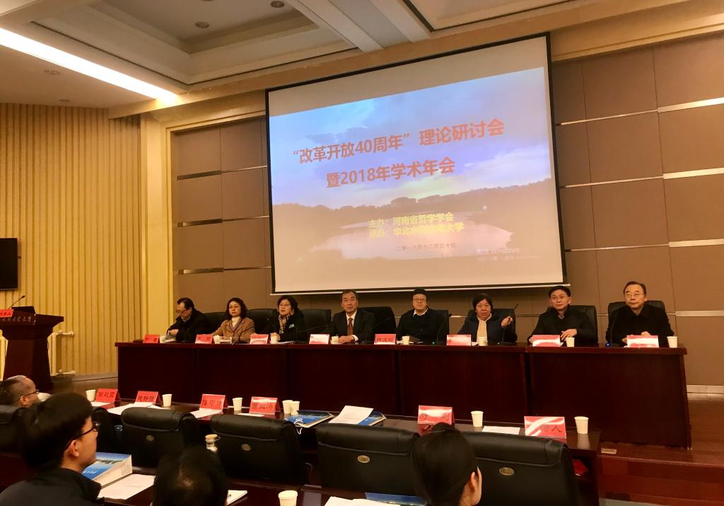 此次会议的主题是《改革开放40年与哲学创新发展》。来自河南省委党校、郑州大学、河南省社科院等高校、科研院所的百余名教师参加了研讨。中央党校原校委委员、博士生导师韩庆祥教授作了《改革开放与人的本质力量》的主题报告。与会的12名学者代表作了交流发言。