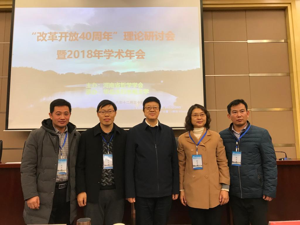 2018年12月29日-30日,河南省哲学学会举办的“改革开放40周年”理论研讨会暨2018年学术年会在华北水利水电大学召开。我校副校长、河南省哲学学会副会长王霞教授与马克思主义教育学院青年教师刘中元、黄瑞新、张希中参加会议。会议安排了王霞副校长担任发言第二阶段的主持人。