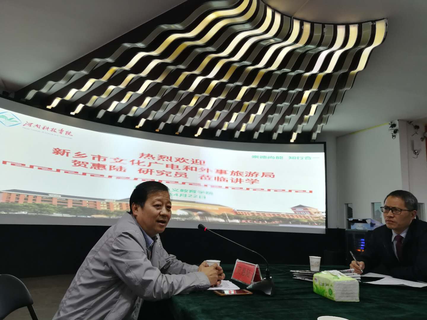 4月22日下午,河南师范大学特聘教授、新乡市文化广电和外事旅游局贺惠陆研究员应马克思主义教育学院的邀请,在国情国史体验馆为我院师生作题为“新乡市卫河流域新石器时代聚落研究”的学术报告。报告会由王冰蔚院长主持。