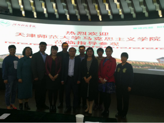 李靖对我院的热情接待表示感谢,并介绍了天津师范大学马克思主义学院的基本情况和改革经验,为我院下一步的发展传经送宝。杨仁忠对我院国情国史体验馆建设和思想政治理论课实践教学改革给予了高度评价,认为我院思政课校内实践教学及平台建设特色鲜明,成绩突出,是对思政课实践教学模式的有益探索和开拓创新。
