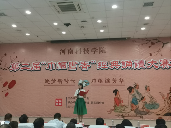 5月23日下午,由校工会主办、校图书馆和机关四分会承办的河南科技学院第二届“巾帼书香”经典诵读大赛成功举办。我院青年教师赵萌参加比赛。赵萌老师朗诵了方志敏烈士创作的经典篇目《可爱的中国》,并荣获二等奖。