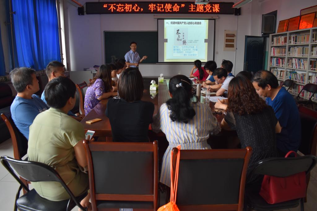 张希中的党课题目为《中国共产党人的初心和使命》。他从中国共产党人初心和使命的内涵、习近平总书记关于初心和使命的重要论述、新时代思政课教师如何做到守初心担使命三个方面进行了讲解。