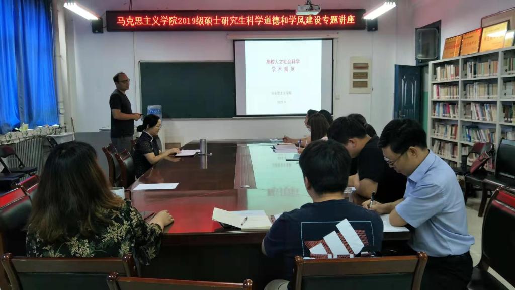 9月10日上午,在8508会议室,马克思主义学院为2019级研究生举办“科学道德和学风建设”专题讲座。讲座由学院副院长毕昱文主持,王涛锴博士主讲。研究生秘书、研究生班主任、2019级全体研究生聆听了讲座。