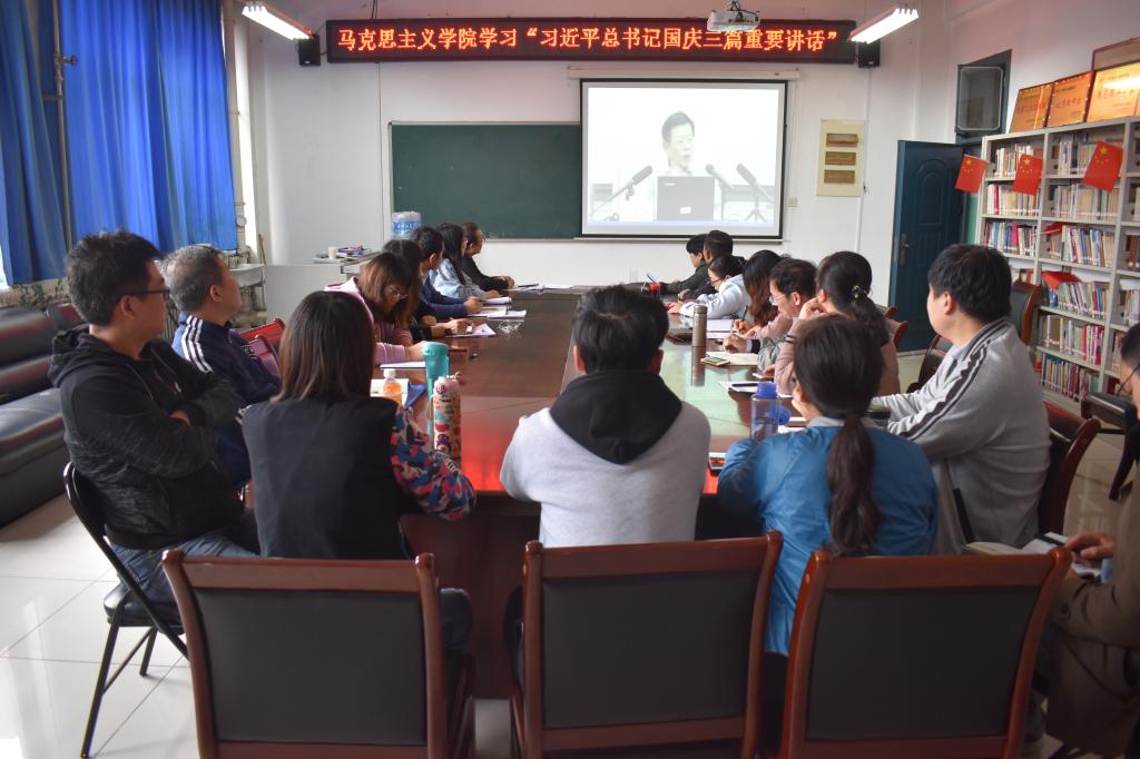 10月11日下午,马克思主义学院在学院508会议室召开“不忘初心、牢记使命”主题教育党总支中心组学习(扩大)会议。学院全体班子成员、各党支部书记和全体教师参加了会议。