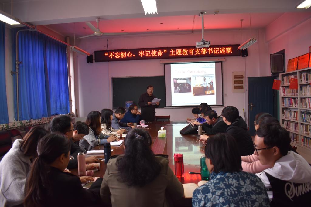 10月22日上午,马克思主义学院党总支在学院508会议室召开了“不忘初心、牢记使命”主题教育支部书记述职评议会议。学院全体党员参加了会议。会议由学院院长兼党总支副书记王冰蔚主持。