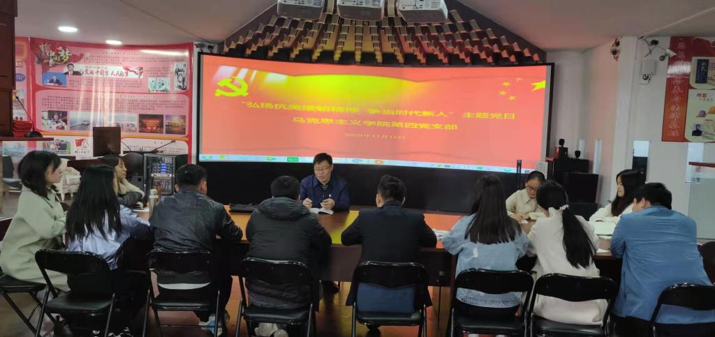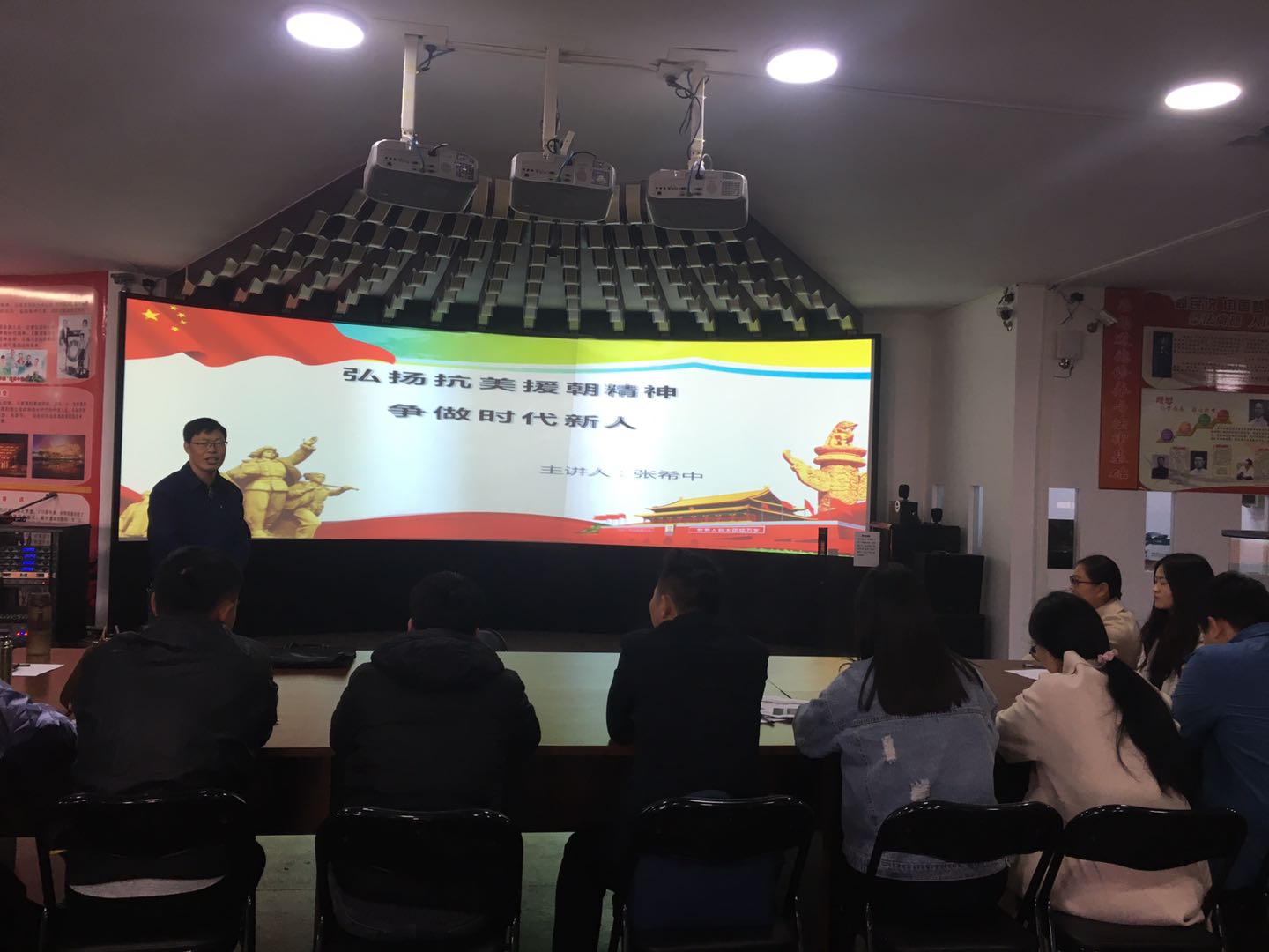 党支部书记张希中以“弘扬抗美援朝精神 争做时代新人”为题,从抗美援朝历史回顾、抗美援朝精神的时代内涵、新时代弘扬抗美援朝精神的路径等三个方面,为与会人员上了主题党课。随后,大家围绕传承和弘扬抗美援朝精神进行了研讨交流。一致认为,抗美援朝精神是激励我们实现中华民族伟大复兴中国梦的强大精神动力。面向世界百年未有之大变局和中华民族伟大复兴的战略全局,必须铭记革命先烈,厚植爱国主义情怀,发扬奋斗精神,勇担时代重任,团结一心把我们的伟大事业推向前进,以青春梦助力中国梦。