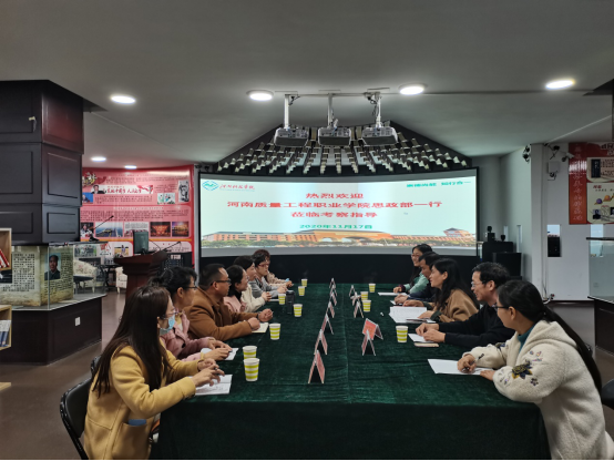 11月17日下午,河南质量工程职业学院思政部主任李向妃、办公室主任石晓燕、概论教研室主任张一斐及思政课骨干教师王亚云、何俊华、梁旭歌、宁晓玲一行7人来我院国情国史体验馆考察交流。我院部分党政班子成员、办公室人员及部分教研室主任参加了交流。会议由王冰蔚院长主持。