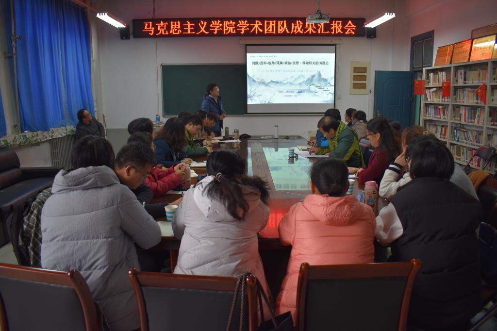 12月10日下午,马克思主义学院在8508会议室举行第一期学术团队报告会。报告会由孙喜英副院长主持,马克思主义学院全体教师参加会议。
