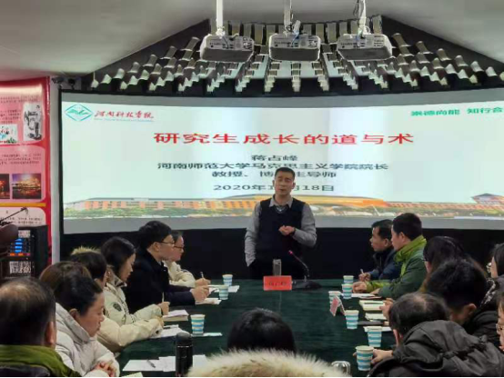 蒋占峰教授以《研究生成长的道与术》为题,从坚守马克思主义之道、读原著悟原理、凝练学术方向、加强学术训练、提高政治能力、处理好师生关系等方面,为大家呈现一场学术含量高、启发性强的报告。蒋占峰教授还介绍了自己从事思政课教学三十年的工作经验,分享了担任研究生导师的感悟。