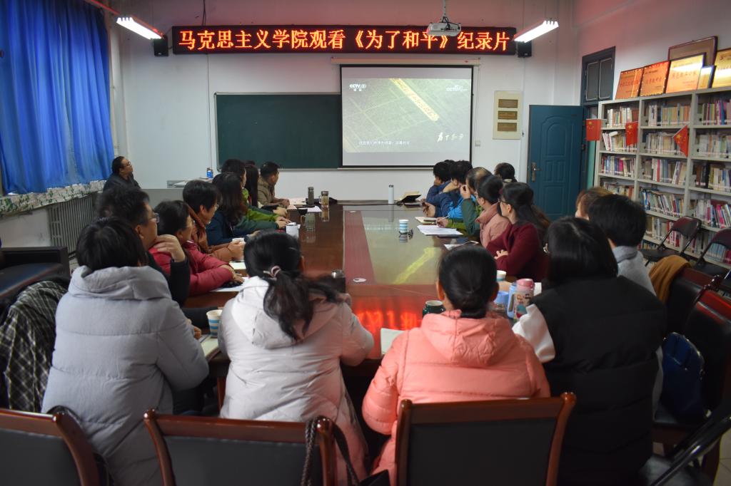为深入学习习近平新时代中国特色社会主义思想,弘扬伟大的爱国主义和革命英雄主义精神,鼓舞和激励全体教师继往开来、奋发有为,培养师生爱国主义情怀,时值“纪念抗美援朝70周年”,我院组织教师观看学习大型电视记录片《为了和平》,分别以集体观看和个人观看的形式进行。