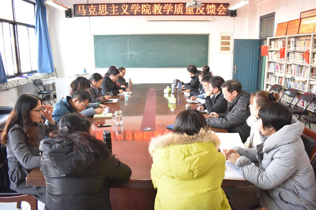 为进一步提升我院教师的教学能力和教学水平,真正提高思政课教学质量,12月24日下午,学院在8#508会议室召开教学质量反馈会。学校教学督导员孟丽教授、学院副院长孙喜英教授和全体教师参加了会议。会议由副院长刘中元主持。