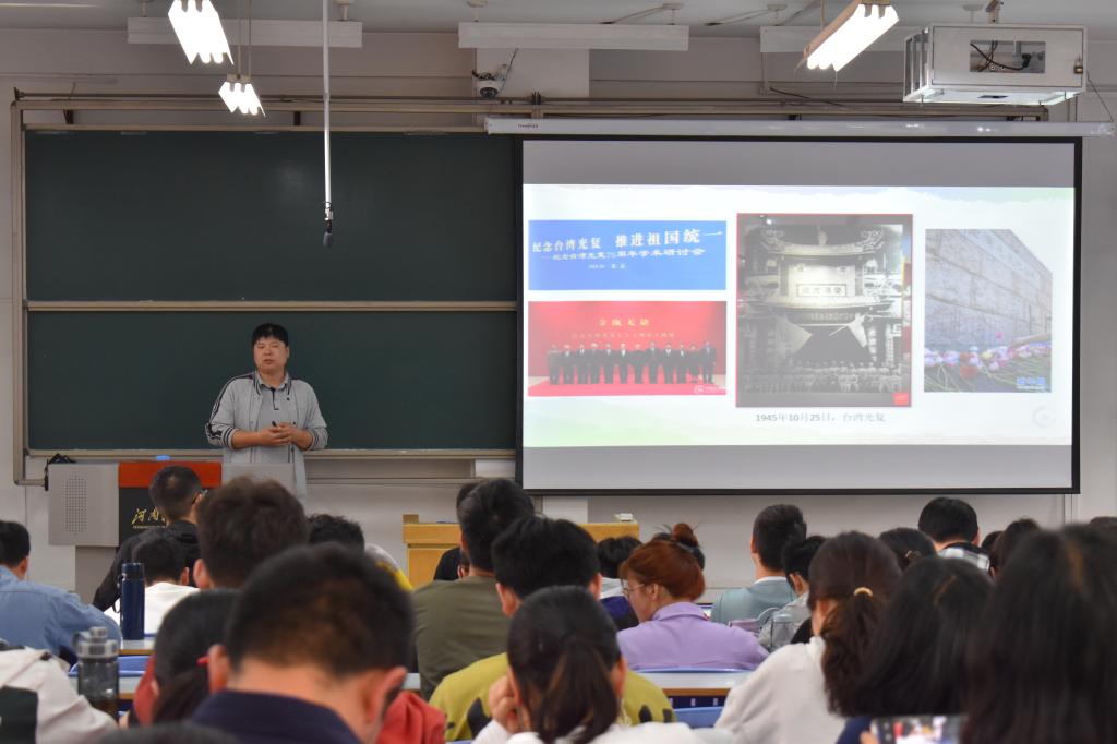 张亮老师以“正确认识两岸关系发展的新形势”为题,对中国共产党在民族复兴新征程中如何推进祖国和平统一进行了解读,让学生看清两岸关系发展的历史大势,坚信台湾问题因民族弱乱而产生,必将随着民族复兴而终结。同时,引导他们共担民族大义,顺应历史大势,参与到推进两岸关系和平发展和祖国统一进程中来。