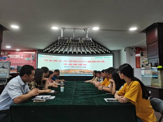 6月17日下午,马克思主义学院在国情国史体验馆召开2021届研究生座谈会。学院党政领导班子所有成员出席会议,会议由王冰蔚院长主持,研究生导师代表、2021届毕业生、2020级全日制研究生参加会议。