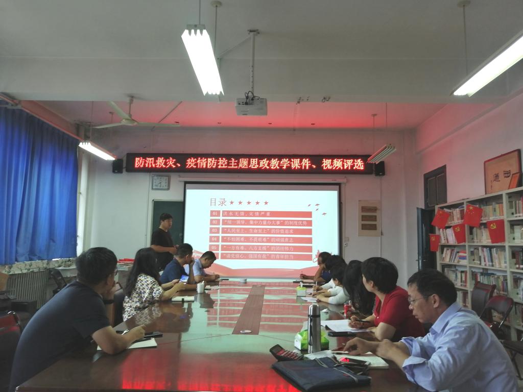 根据《中共河南省委高校工委办公室河南省教育厅办公室关于征集防汛救灾和疫情防控主题思政教学课件、教学视频的通知》的要求,为进一步推动“把灾难当教材 与祖国共成长”主题教育活动,8月30日上午,马克思主义学院在8号教学楼508会议室举行防汛救灾和疫情防控主题教学课件、视频评审会。院长王冰蔚、各教研室主任及相关教师参加了会议。会议由副院长刘中元主持。